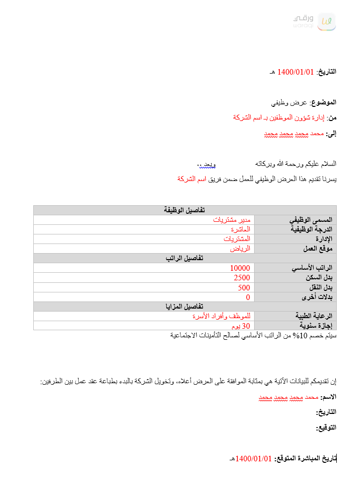 هو خطاب رسمي مقدم من صاحب العمل لعامل إجتاز المراحل الأولية لقبوله للعمل لوظيفة ما، وفي هذا الخطاب يقدم صاحب العمل المميزات الوظيفية التي سيحظى بها العامل حال موافقته على العرض الوظيفي.