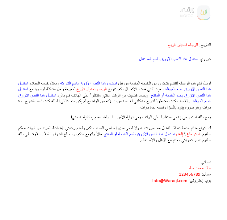 A letter of complaint, or complaint letter, is normally written to deal with a problem situation when other attempts (i.e. phone contacts, e-mails, etc.) have failed to rectify the situation.