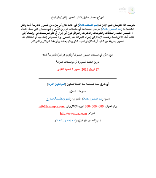 | العنوان: | نموذج إصدار حقوق النشر للصور |