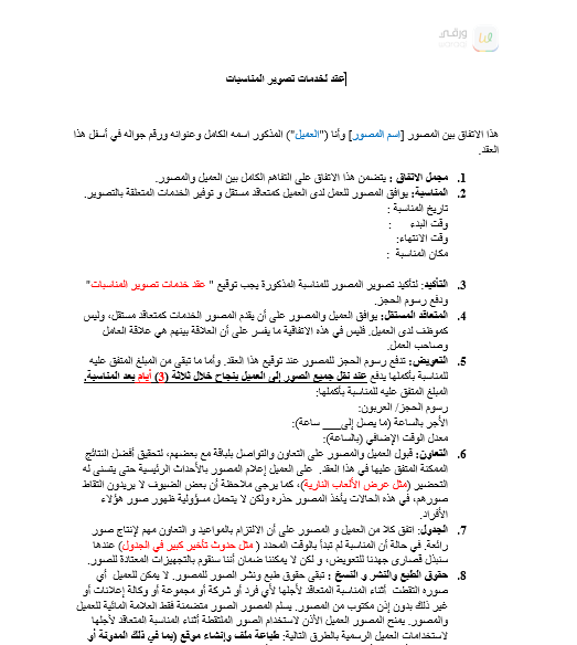 عقد لخدمات تصوير المناسبات