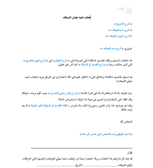 | العنوان: | خطاب تنبيه نهائي للموظف |