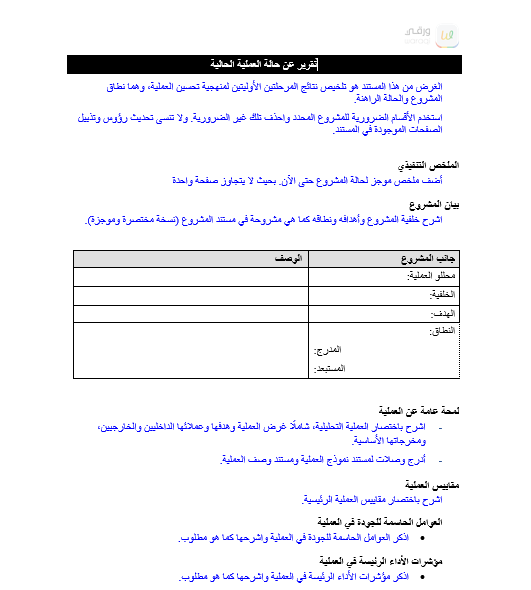 في كل مشروع تحتاج إلى عرض الخطة الخاصة بالمشروع. هنا سوف تجد قالب يتضمن عدة نقاط متعلقة بالمشروع مثل الملخص التنفيذي للمشروع ومقياس العملية والنتائج والملاحظات الخاصة بالمشروع.