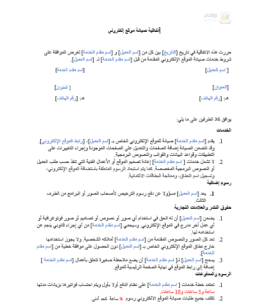 | العنوان: | اتفاقية صيانة موقع إلكتروني |