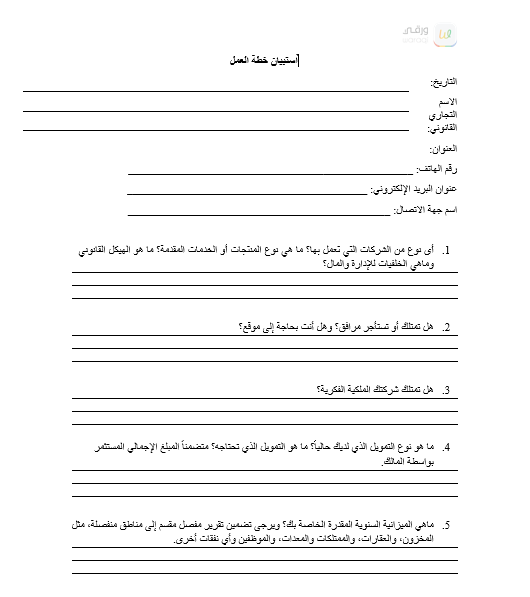 عند التخطيط لأي مشروع من الجيد أن تعد استبيان يوضح خطة العمل التي تريد القيام بها وجمع أراء المشاركين في هذا المشروع. هنا سوف تجد قالب يحتوي على أسئلة تختص بخطة العمل الخاصة بك.
