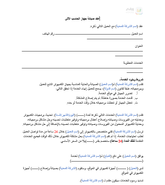يحتوي هذا القالب على شروط وبنود الخدمة المتعلقة بصيانة الحاسب الآلي.