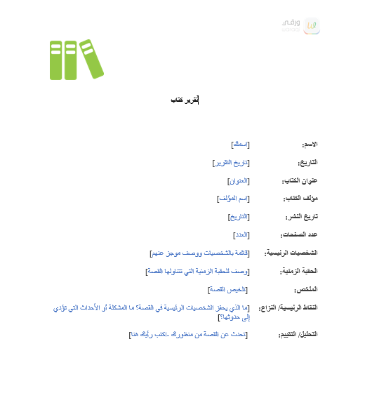 سواء في المدارس أو الجامعات سوف تجد نادي للكتاب يهتم بمناقشة الكتب وتحليلها. هنا سوف تجد قالب يحتوي على النقاط الرئيسة عن تحليل أي كتاب.