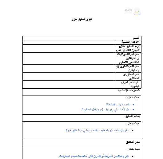 يعتبر هذا القالب نموذجا للتقرير ولأغراض توجيهية فقط ويمكن تغييره وفقا للظروف أو الاحتياجات الفردية للقضية.