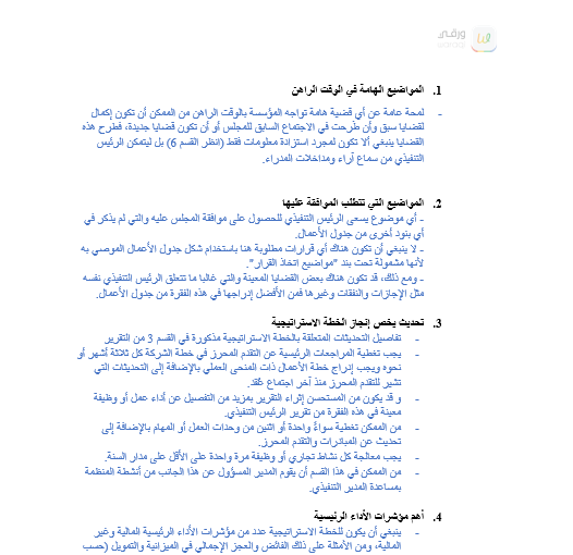 | الوصف بالعربي: | في مجال العمل غالباُ ما يحتاج الرؤساء إلى توضيح المهام والمواضيع التي تبنى عليها الخطط التي تتعلق بطبيعة العمل الخاص بالرئيس التنفيذي لدى الشركة وإعطاء لمحة عامة عن رؤية الشركة للمدراء والموظفين. هنا سوف تجد قالب يحتوي على إرشادات تساعدك على وضع خطتك الاستراتيجية للشركة. |