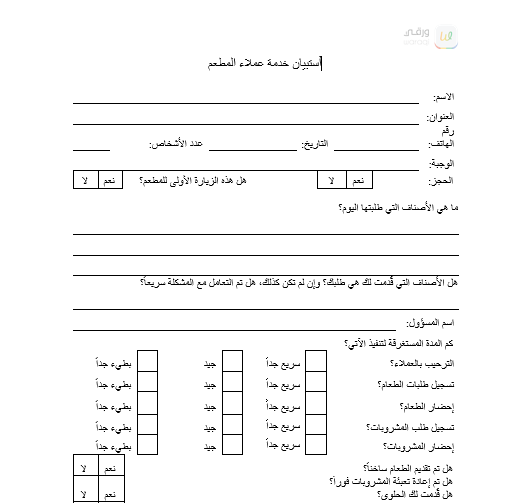 استطلاع خدمة عملاء المطعم