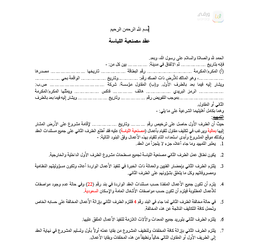 عقد مصنعية اللياسة