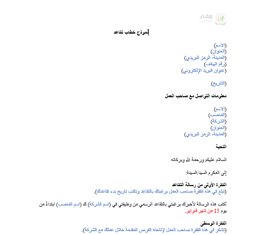| الوصف بالعربي: | عندما تخطط لتقاعد وتقوم بإخبار رئيسك عن هذه الخطوة. سوف تحتاج إلى إرسال رسالة إشعار رسمية تتضمن خططك عن التقاعد من عملك الحالي. هنا نقدم قالب يحتوي على نموذج خطاب تقاعد. بإمكانك إرسال الرسالة إلى مديرك وإلى الموظفين في قسم الموارد البشرية وسوف يتم استخدام هذا النموذج كخطاب رسالة تقاعد رسمي. |