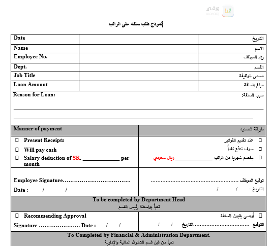 | العنوان: | نموذج طلب سلفه على الراتب |