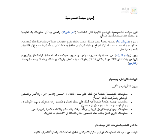نموذج سياسة الخصوصية.docx Download 2 5/16/2017 Arabic