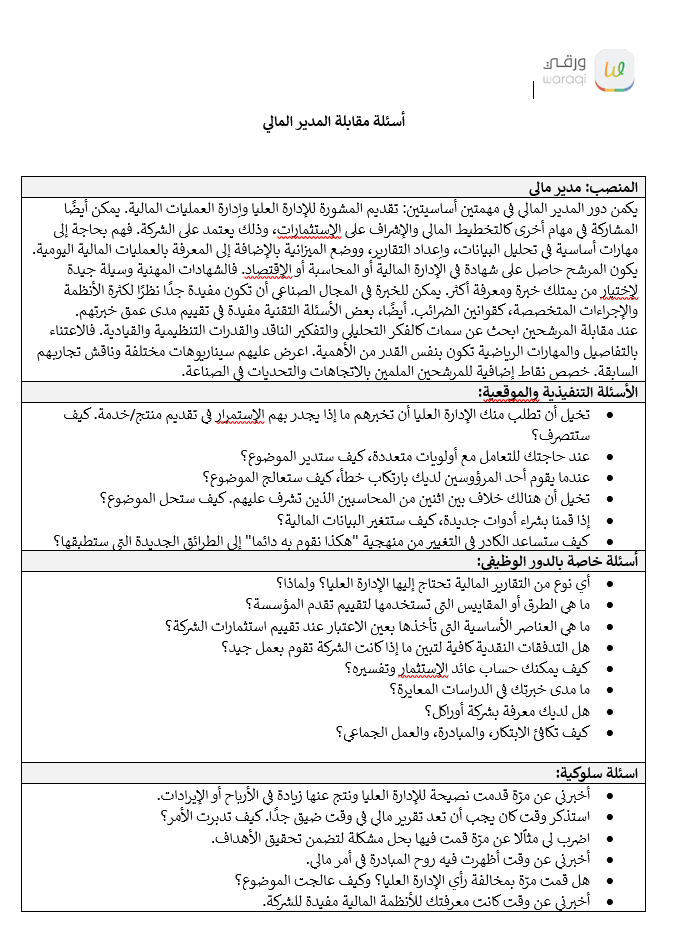 | الوصف بالعربي: | يحظى دور المدير المالي واجبين رئيسي: الأول تقديم المشورة المالية للإدارة العليا والثانية إدارة العمليات المالية للشركة. وحسب سياسة بعض الشركات، فإن المدير المالي قد يشارك في مهام أخرى مثل التخطيط المالي والاشراف على الاستثمارات. |