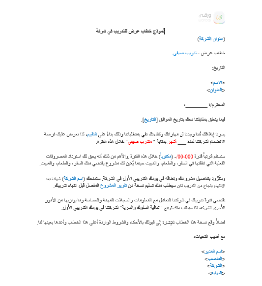 | العنوان: | نموذج خطاب عرض للتدريب في شركة |