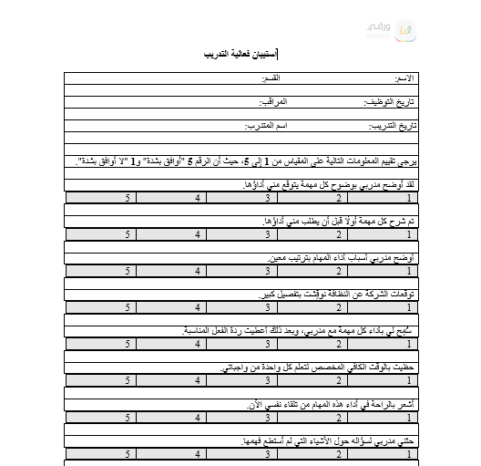 في الوقت الحالي تقوم العديد من الشركات بالاهتمام برأي المتدربين الملتحقين ببرنامج الشركة التدريبي. هنا نقدم قالب يحتوي على أسئلة خاصه للمتدربين ورأيهم عن البرنامج التدريبي والمدرب.