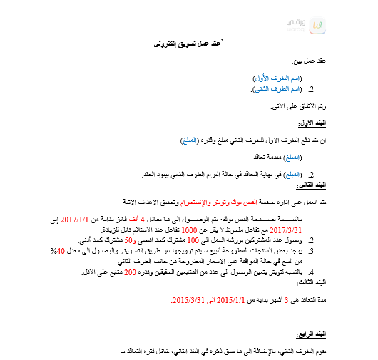 | العنوان: | عقد عمل تسويق إلكتروني |