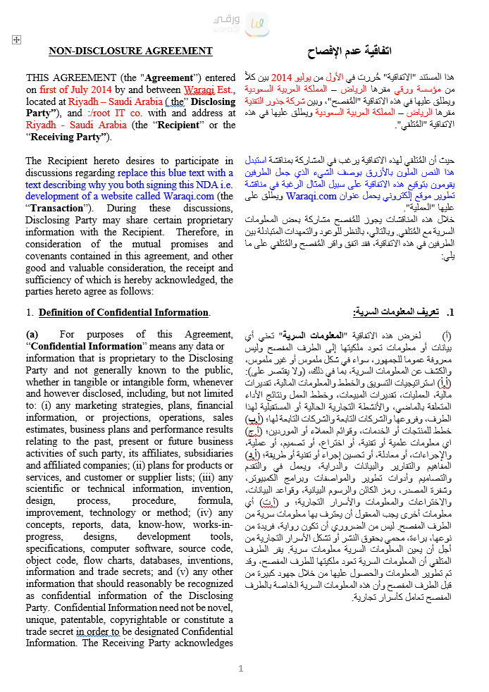 | العنوان: | اتفاقية عدم الإفصاح (إتفاقية السرية) |